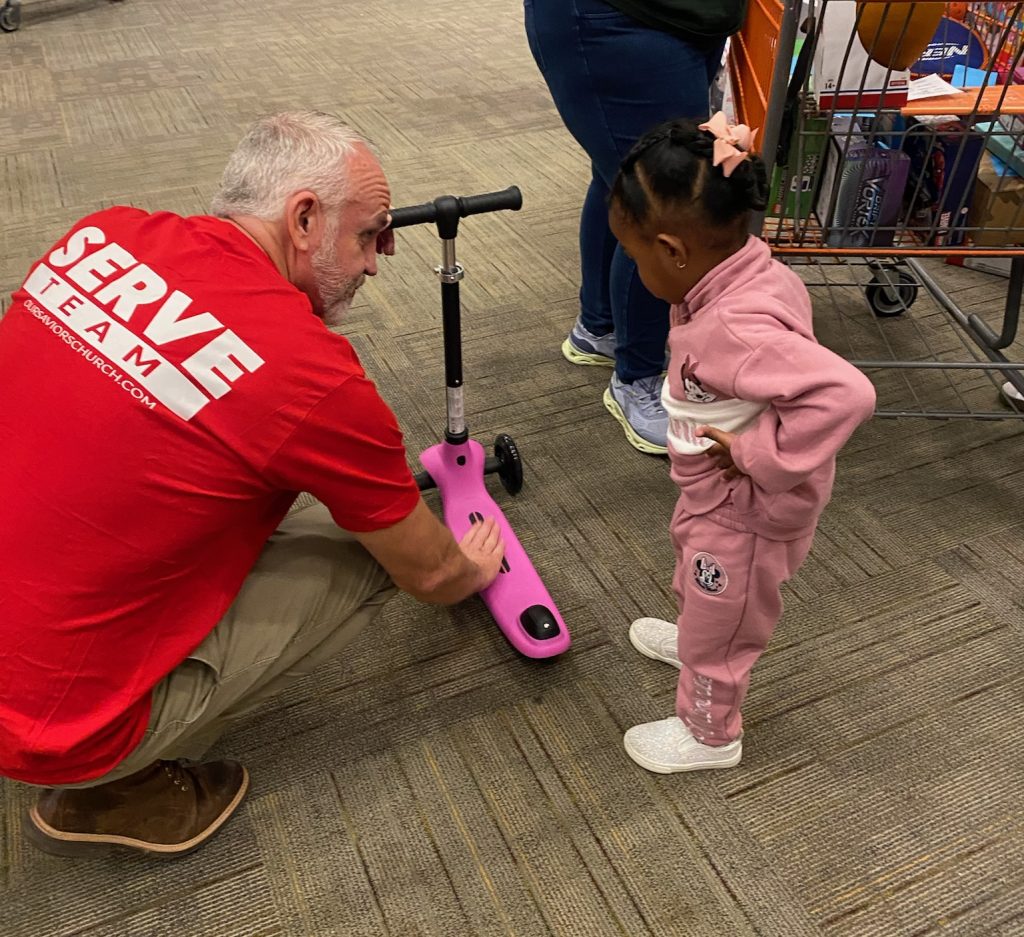 Church spaces were transformed into a department-store experience where parents could shop for their children’s gifts at no cost. While the gifts were being wrapped, parents relaxed with hot cocoa and moments for ministry with our leaders. Gifts and Bibles were provided through generous donors in the church and online, and more than 300 volunteers made the outreach possible. From the time they stepped into the building until we loaded up their vehicles, guests were reminded with word and deed how much Jesus loves them.