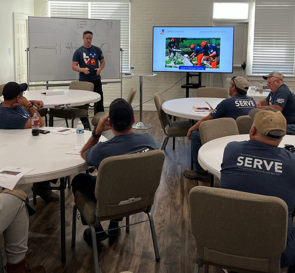 Love Acadiana hosted a Level 2 chainsaw training on August 16 to equip our disaster response lead team with safe stormfall removal skills. The training, held near the OSC-Midtown campus, was led by certified arborist and experienced “red cutter” Matthew Topper of Stormwise.